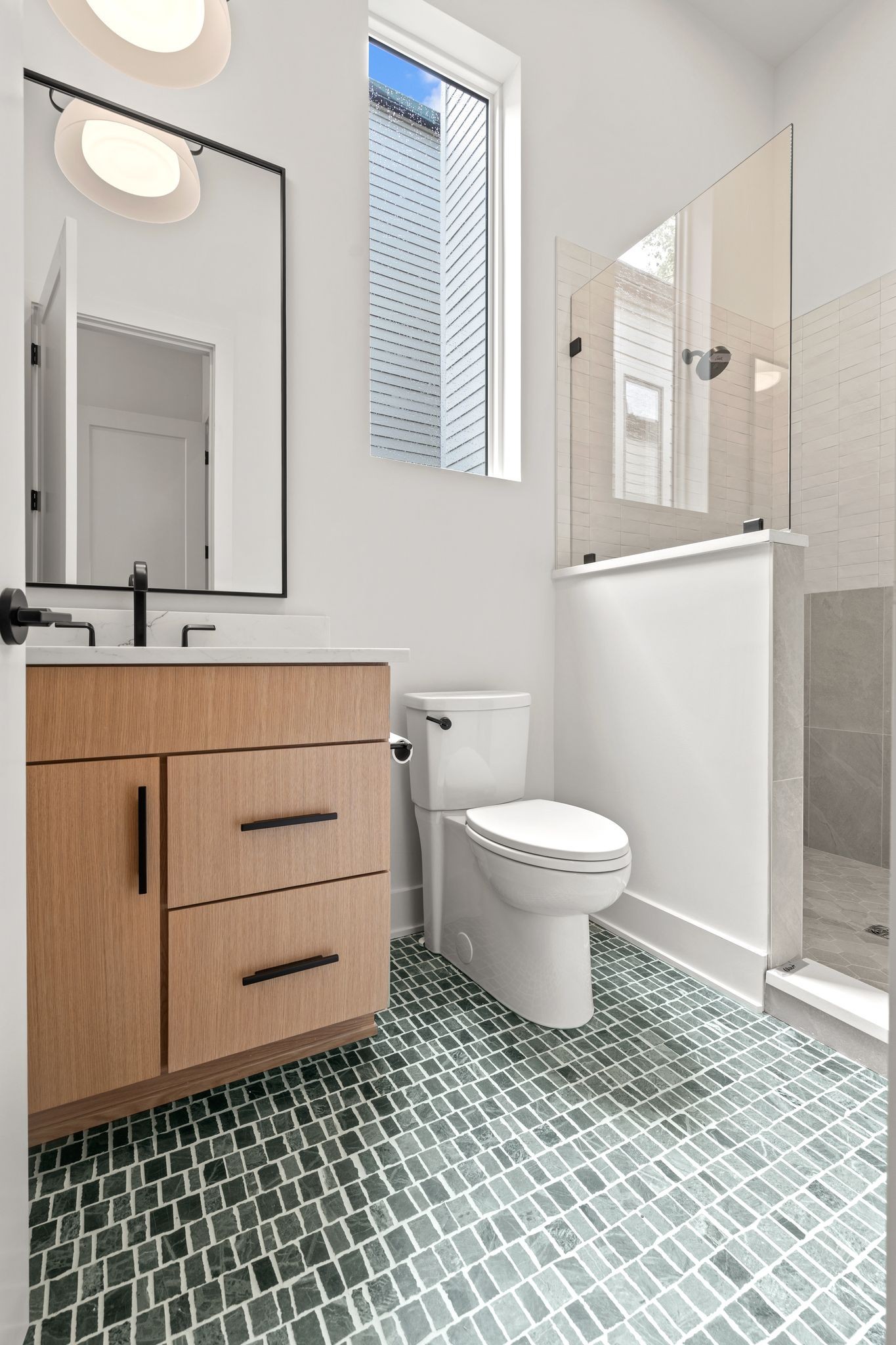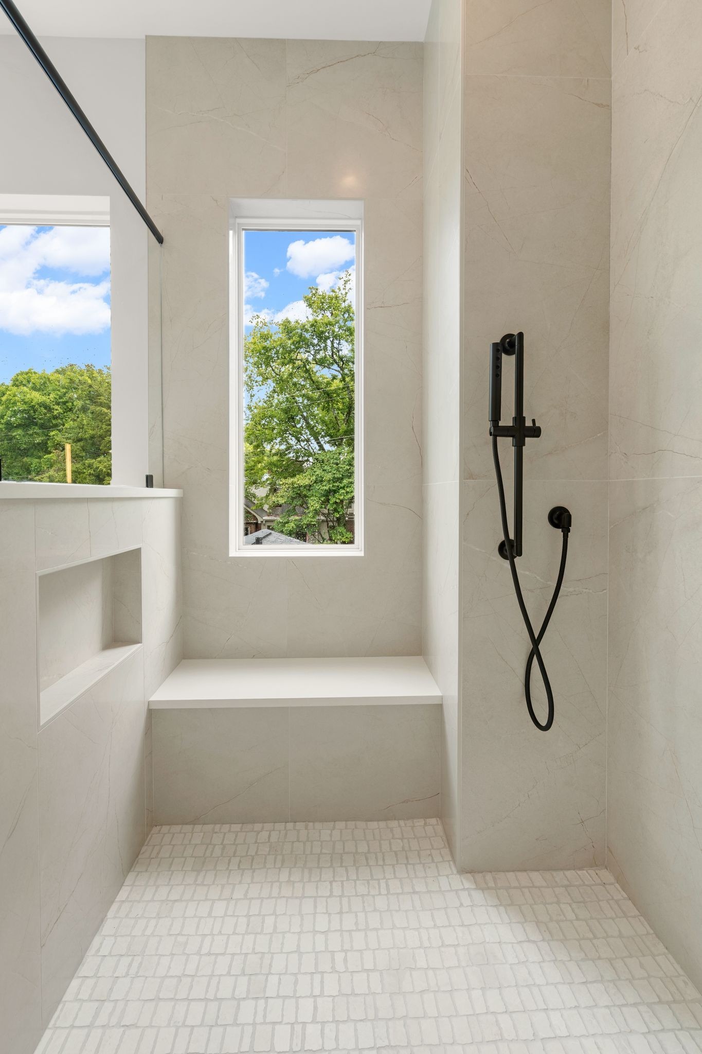 The main level includes a well-appointed secondary suite, while the second floor features a vaulted-ceiling primary suite with a boutique-style bath sanctuary, complete with a soaking tub and dual custom walk-in closets. Upstairs, four additional en-suite bedrooms provide abundant private space for family or guests, along with a spacious rec room ideal for play, study, or a secondary lounge. Every detail reflects intentional design, from wide plank hardwoods to designer lighting and custom built-ins. The juxtaposition of classic brick and warm wood tones is complemented by a covered and screened-in patio, fenced backyard, and mature trees, creating a private retreat for year-round enjoyment. Minutes to premier shopping, dining, and top private schools, this home offers rare access to both convenience and community. A legacy-worthy residence for those who value beauty, space, and distinction.